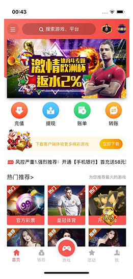 当别人还沉寂在敲打键盘进行游戏时,我们已经将时下最火的体育,快乐彩, 真人娱乐场等游戏装进了口袋,让您真正体验裤兜里的快乐